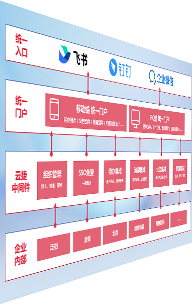 对协作平台提供支持服务,,,支持企业应用与协作平台对接,,包含组织同步、、、消息集成、、待办集成等。。。。支持目前主流的协作平台:钉钉、、、企微和飞书。。。